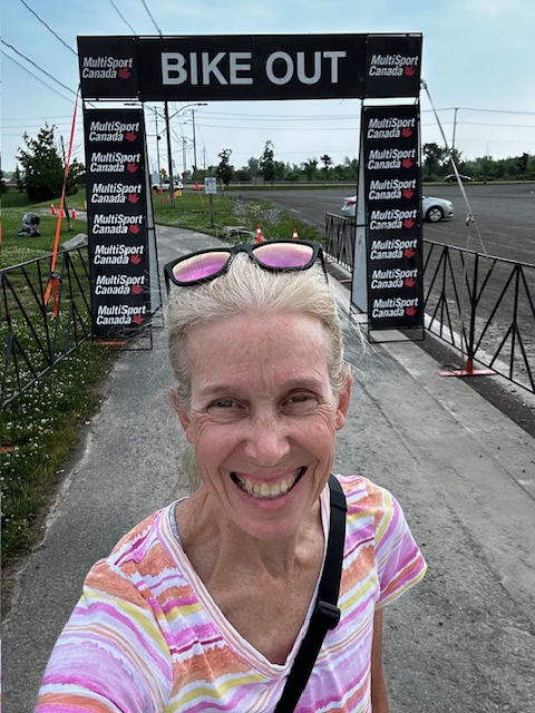 Of the three sports – swimming, cycling and running – swimming is the most difficult with asthma. Since I can’t carry my puffer like I can when I ride or run, I have to make sure that I am warmed up (and my lungs are open) before I start. The Welland Canal was a perfect venue for me as I was able to swim 50 strokes, tread water, swim 50, tread, and so on while the first waves were starting. By the time my wave was called, I was ready and calm; I knew that I had my breathing under control. I felt comfortable throughout the entire 2000m; I never felt the panic that I often do and finished faster than I expected. I felt great getting out of the water and had an easy transition to the bike.