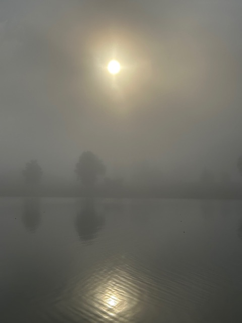 When Dave and I got to the race start in the morning, the air was so thick that you could hardly see the canal. There was talk about delaying the race for safety reasons but, by 7:30, the sun had burned through the clouds and we were going to start at 8:00 as originally planned; my wave was at 8:12, which gave me time to do a short warm-up in the water.